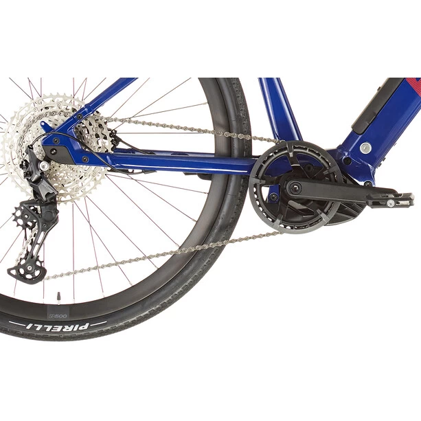 Das Alpenchallenge AMP AL ONE hat einen glatt geschweissten Premium-Aluminiumrahmen und Gabel mit einem Bosch Performance CX Antrieb und einer integrierten PowerTube 625Wh Batterie. Der Rahmen ist für eine lange Lebensdauer pulverbeschichtet, hat Schutzblechhalterungen und einen ICS Vorbau. Der Antrieb besteht überwiegend aus Shimano Deore 11-Speed, einer FSA-Kurbelgarnitur, einem SR500-Laufradsatz und 37-mm-Pirelli Cycl-e GT-Reifen.