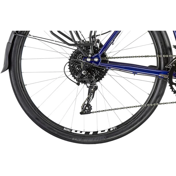 Mache deine Flucht mit einem Minimum an Aufregung. Das anpassungsfähige und langlebige Arise ist mit einer Wunschliste an Tourenausrüstung ausgestattet. Twin Tubus Gepäckträger, Schutzbleche und Supernova Dynamo-Beleuchtung sorgen dafür, dass das Arise Tour direkt vom Fahrradladen in die Wildnis führt. Mit der Ames-Kettenradgarnitur 30 / 46 T und einer riesigen 11 – 42 T Kassette geht dir auch beim Transport schwerer Lasten nie die Gänge aus. Sie wird von einfachen Lenkerendschaltern betätigt, die alle Alternativen überdauern und dennoch unter allen Bedingungen unglaublich einfach zu bedienen sind.