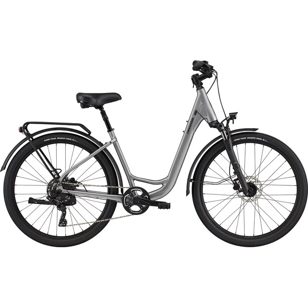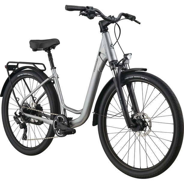 Das Adventure zeichnet sich durch Cannondales Rahmen mit besonders tiefem Durchstieg aus, eine moderne Interpretation eines klassisches Designs, mit dem das Aufsteigen und Losfahren noch einfacher wurde. Einfach aufsteigen, die Tour genießen, nach der Tour entspannt absteigen und das Fahrrad dank integriertem Seitenständer lässig abstellen. So lässt sich jede Fahrt genießen.