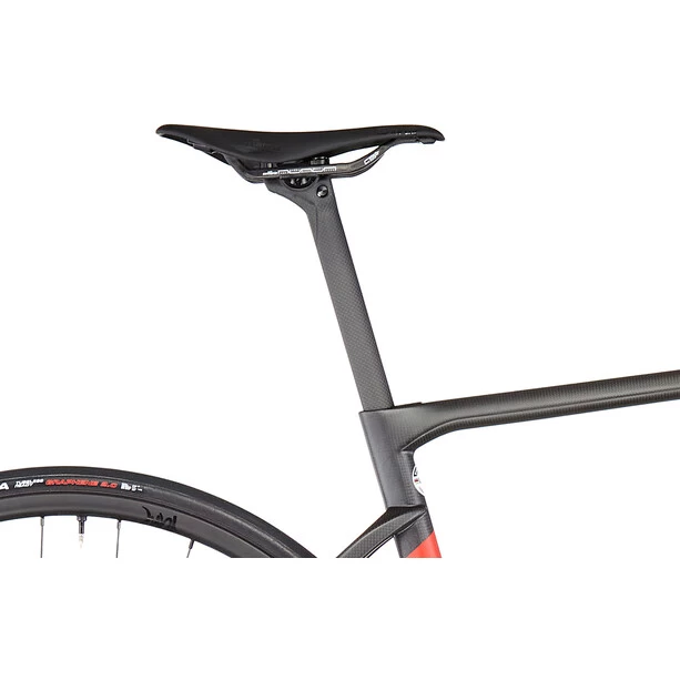 Dank einer speziellen Konstruktion von Gabel und Steuersatz sorgt die komplett interne Kabelführung für ein cleanes Design und aerodynamische Vorteile. Auch die Sitzstreben sind aerodynamisch optimiert. Die Gabel ist geradlinig und bietet dir ein direktes Lenkgefühl.