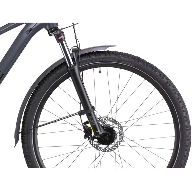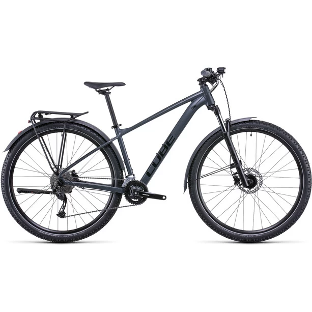 Mountainbikes sind die perfekten Tools zum Grenzen testen. Genau deshalb hat Cube das neue Aim SL Allroad so vielseitig wie möglich gemacht. Zum einen wartet es mit Schutzblechen, Beleuchtungssystem, Seitenständer und einem universellen Gepäckträger auf und liefert damit auf dem Weg zur Arbeit oder bei anderen Touren durch die City unschlagbaren Support. Zum anderen spielen die Suntour Federgabel, die 2×9-fach Shimano Schaltung, die hydraulischen Scheibenbremsen und die griffigen, 2.25 Zoll breiten Reifen dann ihre Qualitäten voll aus, wenn der Asphalt endet und das Gelände beginnt. Last, but not least: Mit dem SizeSplit System bekommt jede und jede das Aim SL Allroad mit der für sich perfekten Kombination aus Rahmen- und Laufradgröße. Man kann nicht alles haben, heißt es. Dieses Bike liefert den Gegenbeweis!