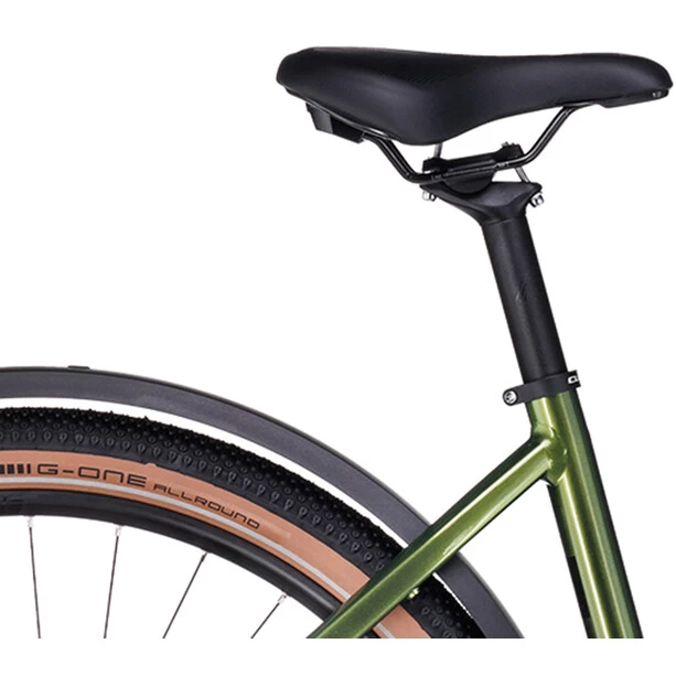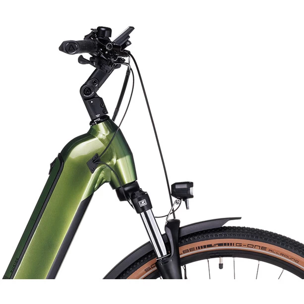 Das Modular Battery System des Nuride Hybrid Pro Allroad wurde im Hinblick auf einfaches Handling, hohen Komfort und ein elegantes Erscheinungsbild konzipiert. Dieses Konzept geht auf: Der Bosch PowerTube Akku verschwindet formschön und dezent im Chassis, egal ob Tiefeinsteiger, Trapezversion oder klassischer Herrenrahmen. Zudem ist es komplett mit dem neuen Smart System von Bosch kompatibel. Damit du für jede Tour und Fahrt optimal gerüstet bist, wurde dem Bike zudem praktisches Zubehör spendiert: Schutzbleche, eine Lichtanlage und einen Seitenständer. Und die Efficient Comfort Geometry sorgt für einen erwartungsgemäß hohen Fahrkomfort, egal ob in der City oder bei Wochenendausflügen ins Grüne.