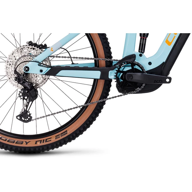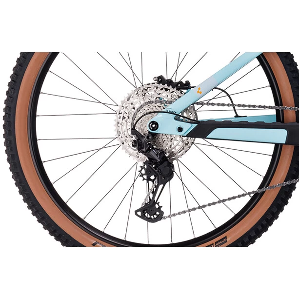 Weiterentwicklung ist der zweiter Vorname von CUBE, weshalb jetzt alle Stereo Hybrid 140 HPC Rahmen innerhalb des SizeSplit Systems auch mit einem 750 Wh starken Akku bepackt werden können – optimal unter einem Cover vor Matsch und Spritzwasser geschützt. Du profitierst also von der Power des Bosch CX Antriebs der vierten Generation mit kraftvollen 85 Nm Drehmoment, egal mit welchem Rahmen und wie lange du unterwegs bist. Eine Boost 148 Steckachse, große Lager und die All Mountain Geometry versprechen sicheres Handling, selbst wenn du die 140 mm Federweg hinten und 150 mm vorne voll ausreizt. Und weil sich Stürze trotzdem nicht immer vermeiden lassen, wurde dem Bike ein einfach austauschbares UDH Schaltauge von Sram spendiert. Im Inneren verlaufende Kabel und Züge reduzieren den Wartungsaufwand und geben dem cleanen Look dieses Carbonhauptrahmens den letzten Schliff.