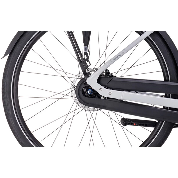 Schlicht, elegant, praktisch und sicher: So lässt sich der Supreme Hybrid Rahmen wohl am besten beschreiben. Dank PowerTube Design fügt sich der Bosch Motor formschön ins Chassis ein. Das sorgt nicht nur für einen schlanken, harmonischen Look, sondern auch für supereinfaches Handling. Außerdem macht dieser Tiefeinsteiger seinem Namen alle Ehre – bequemes und schnelles Aufsitzen und Losradeln sind damit selbstverständlich. Apropos losradeln: Das Chassis wurde speziell für die Verwendung mit einer wartungsarmen Nabenschaltung konzipiert. Zugunsten erstklassiger Lenkpräzision und einfachem, intuitivem Handling hat man sich zudem für ein superstabiles und sicheres konifiziertes Steuerrohr entschieden. Und es wurde ein semi-integrierter Gepäckträger verbaut. Praktisch und funktionell ist gut, aber nicht alles: Für eine durch und durch authentische, elegante Optik kam das Smooth Welding Verfahren zum Einsatz.