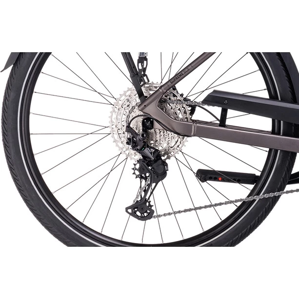 Manchmal muss es eben das Beste vom Besten sein – und bei dem Supreme Sport Hybrid SLX sieht das so aus: Ein geschmeidig und kraftvoll arbeitender Bosch CX Motor der vierten Generation mit 625 Wh starkem Akku trifft auf eine leichtgängige, breit gefächerte Shimano XT 12-fach Schaltung. Das Ergebnis: müheloses, kraftsparendes Pedalieren auf allen Routen. Dank RockShox Paragon Gold Luftfedergabel, 50 mm breiten Schwalbe Marathon E-Plus Reifen und gefederter Sattelstütze können ihm selbst raueste Straßenbeläge in der City nichts anhaben. Und die hydraulischen Shimano Scheibenbremsen vermitteln zu jeder Zeit Sicherheit und Kontrolle. Eine Vollausstattung mit praktischem Zubehör – Seitenständer, Lichter, Schutzbleche und ein semi-integrierter Gepäckträger – rundet diesen City-Allrounder gekonnt ab.