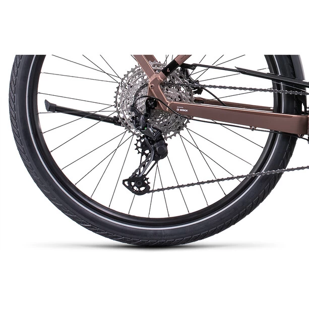 Beim Touring Hybrid findet jeder die Rahmenvariante, die auf seine individuellen Anforderungen passt – es gibt ihn als klassischen Herrenrahmen, als Trapezversion oder als Tiefeinsteiger. Alle drei Optionen wurden mit viel Liebe zum Detail konzipiert und bei allen dreien wurden der kraftvolle Bosch Motor (Generation 3) und Powertube Akku so platziert, dass der Schwerpunkt möglichst tief liegt und damit ein sicheres und einfaches Handling gewährleistet ist. Bei der Efficient Comfort Geometry ist der Name Programm: Sie ergibt ein E-Bike, das sich genauso gut fährt, wie es aussieht. Das Tüpfelchen auf dem I ist der stabile Gepäckträger, der formschön und dezent in den Rahmen integriert wurde und auf dem alles Platz nimmt, was unterwegs mit muss.