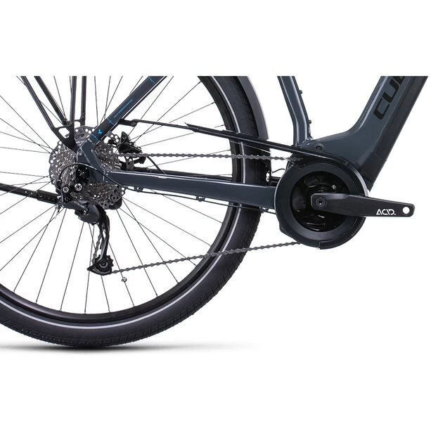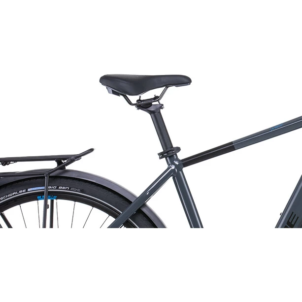 Egal wohin die Reise geht, das Touring Hybrid ONE ebnet den Weg – und zwar mit einer Extraportion Style und Komfort. Der leistungsstarke Bosch Motor samt Powertube Akku macht in Kombination mit der zuverlässigen, einfach zu bedienenden Shimano 9-Gang Schaltung jede Tour zum kraftsparenden Vergnügen. Und weil nicht nur das Vorwärts zählt, haben wir dem Bike kräftig zupackende hydraulische Scheibenbremsen von Shimano gegeben – für kontrolliertes Bremsen bei jedem Wetter. Stichwort Wetter: Dank langer Schutzbleche bleiben die Klamotten unterwegs immer sauber und trocken. Auch für top Fahrkomfort ist gesorgt. Die Federgabel mit 100 mm Federweg sowie breite, griffige Reifen bügeln sämtliche Unebenheiten auf der Straße glatt. Dazu kommen ein Beleuchtungssstem, ein Seitenständer und der Gepäckträger, auf dem sämtliches Hab und Gut bequem und sicher Platz findet. Dann kann’s ja eigentlich losgehen, oder?