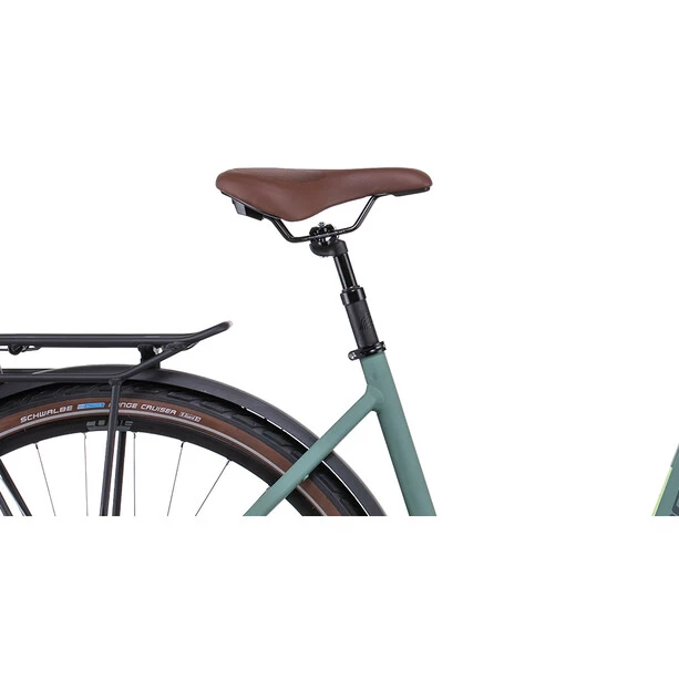 Das Herzstück der Touring Serie ist der hochwertige, leichte Rahmen aus doppelt konifizierten Aluminiumrohren. Die Efficient Comfort Geometry sorgt dabei für Leichtigkeit, Effizienz und Fahrkomfort, was sich besonders an langen Tagen im Sattel bezahlt macht. Zugleich überrascht der Rahmen mit seiner Agilität und dem intuitiven Handling. Die Version mit tiefem Einstieg sieht nicht nur gut aus, sondern erleichtert auch das Auf- und Absteigen. Zusätzlich gibt es das Modell als sportlichen Trapezrahmen und klassischen Herren Diamantrahmen in fünf verschiedenen Größen. Alle Varianten verfügen über einen eleganten Gepäckträger und ins Unterrohr verlegte Züge, damit die Schaltung dauerhaft präzise arbeitet und ohne großen Wartungsaufwand auskommt.