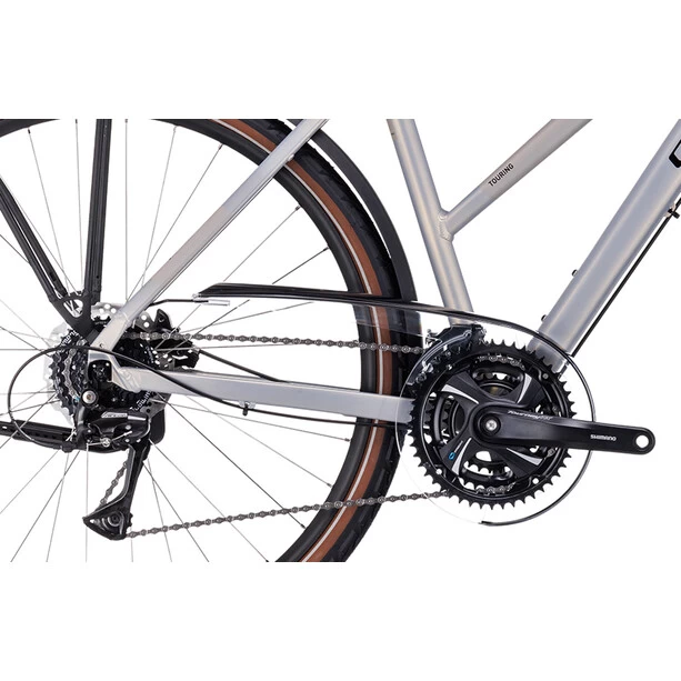 Das Herzstück der Touring Serie ist der hochwertige, leichte Rahmen aus doppelt konifizierten Aluminiumrohren. Dabei sorgt die Efficient Comfort Geometry für Effizienz, Fahrkomfort und ein agiles, intuitives Handling, was sich besonders an langen Tagen im Sattel bezahlt macht. Die Version mit tiefem Einstieg sieht nicht nur gut aus, sondern erleichtert auch das Auf- und Absteigen. Zusätzlich gibt es das Modell als sportlichen Trapezrahmen sowie als klassischen Herren-Diamantrahmen in fünf verschiedenen Größen. Da findest du mit mit Sicherheit die optimale Passform für dich und deine Ansprüche! Alle Rahmenformen sind mit einem eleganten Gepäckträger und ins Unterrohr verlegten Zügen ausgerüstet, damit die Schaltung dauerhaft präzise arbeitet und ohne großen Wartungsaufwand auskommt.