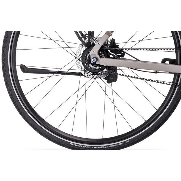 Auch wenn es auf den ersten Blick vielleicht so aussieht – das Travel EXC ist kein gewöhnlicher Sport-Tourer. Dank seinem leichten, vielseitigen Rahmen, 700c Laufrädern, einer robusten Shimano Alfine 8-Gang Nabenschaltung und dem superlanglebigen Gates CDX Zahnriemen gehören rasselnde, ölige Ketten der Vergangenheit an. Die Reifenfreiheit nimmt robuste, komfortable Reifen bis zu einer Größe von 42×622 auf – inklusive Schutzbleche. Und die kraftvollen hydraulischen Scheibenbremsen von Shimano verzögern das Bike sicher und kontrolliert. Als Draufgabe wurde ein komplettes Touren-Zubehörset verbaut: Lichtanlage, Seitenständer, Gepäckträger. Dadurch ist dieser Allrounder jederzeit zu allen Schandtaten bereit!