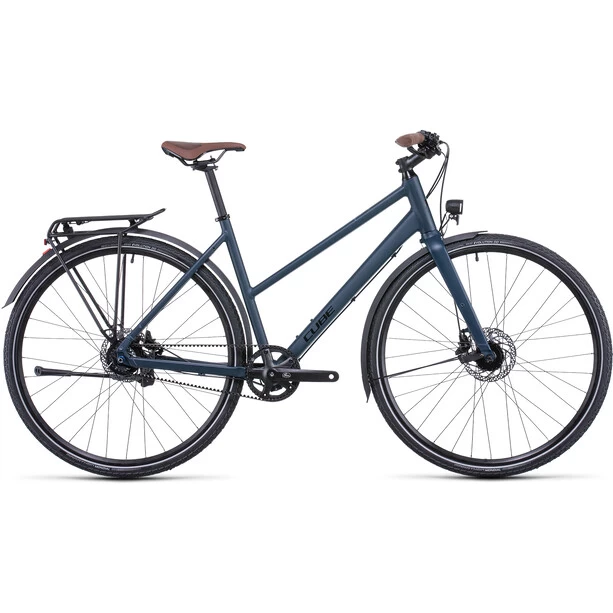 Auch wenn es auf den ersten Blick vielleicht so aussieht: Das Travel EXC ist kein gewöhnlicher Sporttourer. Dank seinem leichten, vielseitigen Rahmen, 700C Laufrädern, einer robusten Shimano Alfine 8-Gang Nabenschaltung und dem super langlebigen Gates CDX Zahnriemen gehören rasselnde, ölige Ketten der Vergangenheit an. Die Reifenfreiheit nimmt robuste, komfortable Reifen bis zu einer Größe von 42×622 auf – inklusive extralanger Schutzbleche. Und die kraftvollen hydraulischen Scheibenbremsen von Shimano verzögern das Bike sicher und kontrolliert. Als Draufgabe hat Cube ein komplettes Touren-Zubehörset verbaut: Lichtanlage, Seitenständer, Gepäckträger. Dadurch ist dieser Allrounder jederzeit zu allen Schandtaten bereit!