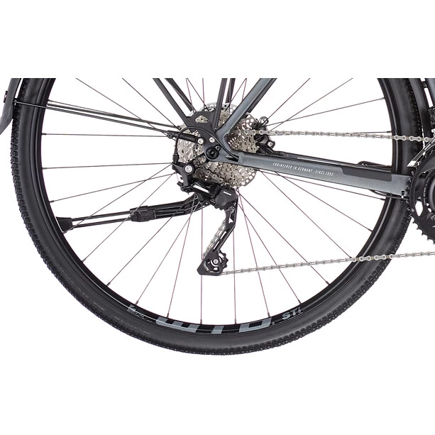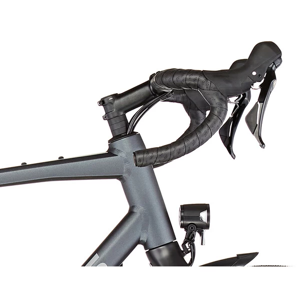 Ob schlechtes Wetter, fordernder Untergrund, steile Anstiege oder lange Distanzen – das schnelle und komfortable Gravelbike bietet dank breitem Lenker mit Flare sowie Scheibenbremsen volle Kontrolle und viel Komfort. Das aufgeräumte Cockpit mit Kabelführung vom Lenker direkt in den Steuersatz sorgt auch dafür, dass eine Lenkertasche problemlos befestigt werden kann. Damit du auch mit Gepäck alle Berge bezwingen kannst, hat die Shimano GRX Gravel-Schaltgruppe eine super angenehme Übersetzung für Jedermann.