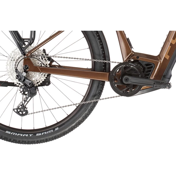 Der Bosch Powertube Akku mit 750 Wh sitzt perfekt integriert im Unterrohr und ist jederzeit zum Laden entnehmbar. Die Reichweiten kann mit einer zweiten Batterie (Bosch Powerpack) auf 1125 Wh erweitert werden.