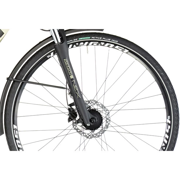 Ob in der Stadt oder im Gelände: Die hydraulischen Scheibenbremsen greifen auch bei Nässe zuverlässig sicher und schnell, lassen sich gut dosieren und sind nicht anfällig in Sachen Schmutz oder Performance-Verlust.