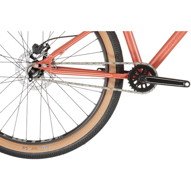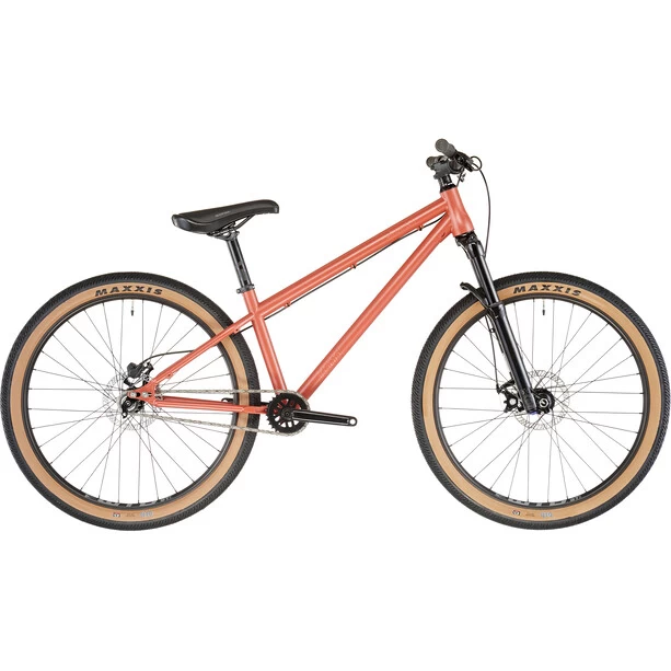 Der Stahl-Rahmen mit moderner Dirt-Geometrie wird mit einer Manitou Circus Expert mit 100 mm Federweg kombiniert, um auch die härtesten Landungen abzufedern und mit der Tektro HD-M275 Bremse am Hinterrad kommst du zuverlässig zum Stehen. Der Klassiker unter den Reifen, der Maxxis DTH 26×2,3″-Reifen rollt auf den tubeless kompatiblen WTB ST i30-Felgen. Die Formula Naben haben moderne Maße und sorgen damit für noch mehr Stabilität. Der Antrieb ist ebenfalls auf Haltbarkeit getrimmt: Das Kona Shonky kommt mit Singlespeed-Antrieb und BMX-Kurbeln aus Stahl. Mit Cockpit und Sattel-Kombi von Kona hast du ein rundum zuverlässiges Bike, mit dem du Spaß auf jedem Dirt- oder Pumptrack-Hügel haben wirst.