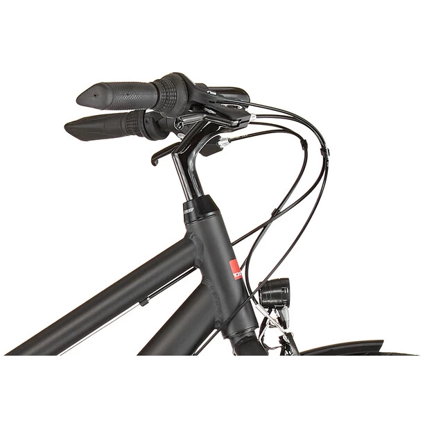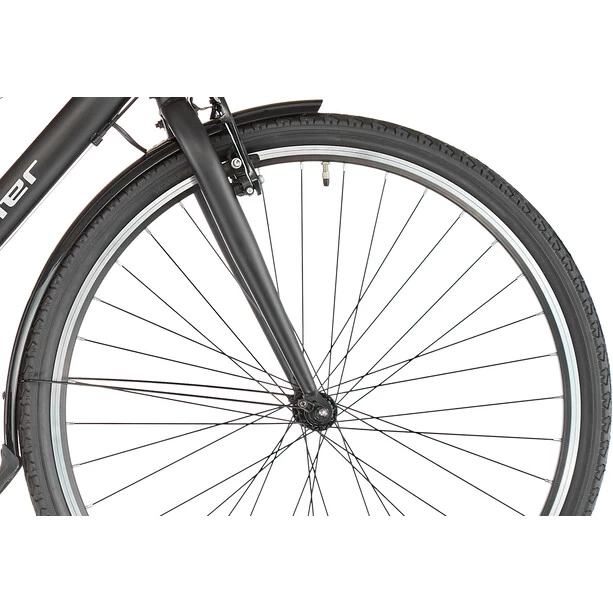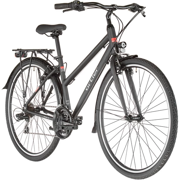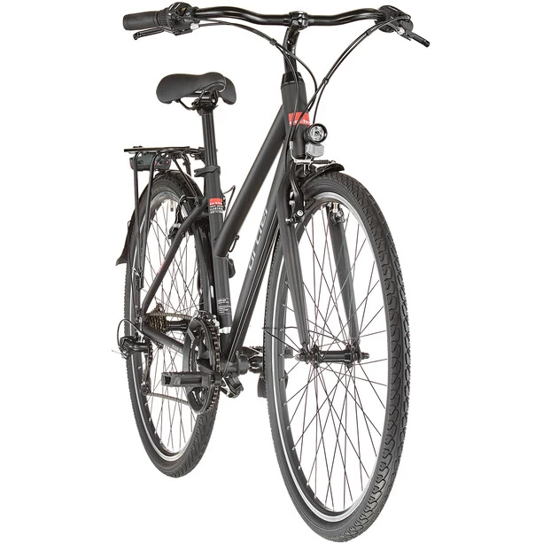 Mit dem Meran wurde ein schönes Designkonzept wahr: zeitlose Optik trifft auf bewährte Tradition und modernste Fahrrad-Technologie. Der Verzicht auf Federungskomfort bringt Vorteile mit sich – direktes Fahrverhalten, geringes Gewicht, weniger Verschleiß. Damit ist das Ortler Meran ein leichtes, sportives Trekkingrad, das sich auf das Wesentliche konzentriert. Die moderate Sitzposition wird mittels Tourenlenker und Ergogriffen zusätzlich verbessert, so dass auch anspruchsvolle Radtouren genussvoll bleiben. Für hohe Zuverlässigkeit und lang anhaltenden Fahrspaß sorgen bewährte Shimano Antriebskomponenten mit 21 Gängen und die mittels Nabendynamo betriebene LED-Lichtanlage.