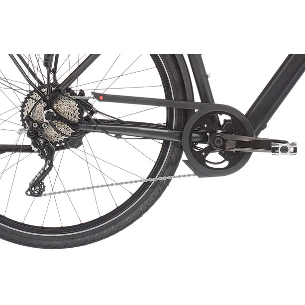 Scheibenbremsen von Shimano verzögern präzise und sorgen für sicheres Handling. Die LED-Lichtanlage von Herrmanns (vorne) und Busch & Müller (hinten), die praktischen Racktime Gepäckträger, sowie SKS-Schutzbleche mit Kantenschoner ergänzen die alltagstaugliche Ausstattung des TC-E Carry.