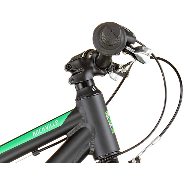 Das sportliche Rockville ist ein Kinder-Mountainbike der Extraklasse. Der leichte Alurahmen hat nicht nur eine robuste Ausstattung, sondern durch das stark abfallende Oberrohr auch eine sehr kindgerechte Geometrie die ein sicheres Handling des Rockvilles ermöglichen. Die Shimano Tourney 7-Gang Kettenschaltung bietet ausreichend Übersetzung für die ersten längeren Ausfahrten und über den Shimano Drehgriff wird der Schaltvorgang sauber und schnell vollzogen.
