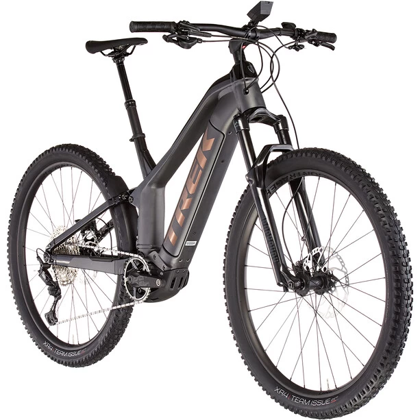 Einen robusten Rahmen aus Aluminium mit vollständig integriertem und ausdauerndem 500-Wh-Akku, ein leistungsstarkes Bosch Performance CX Antriebssystem (250 W Leistung, 75 Nm Drehmoment) für eine Tretunterstützung bis 25 km/h und einen Kiox Controller. Außerdem eine RockShox Gold RL 120-mm-Federgabel, einen RockShox SIDLuxe Select+ 100-mm-Dämpfer, kraftvolle hydraulische 4-Kolben-Scheibenbremsen, Bontrager Line Comp 30 Laufräder, ein Shimano 12fach-Antrieb und eine Vario-Sattelstütze.