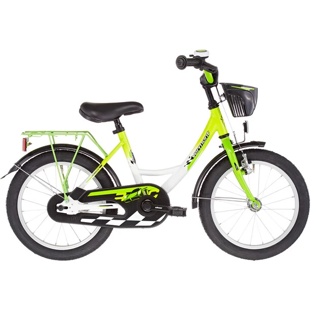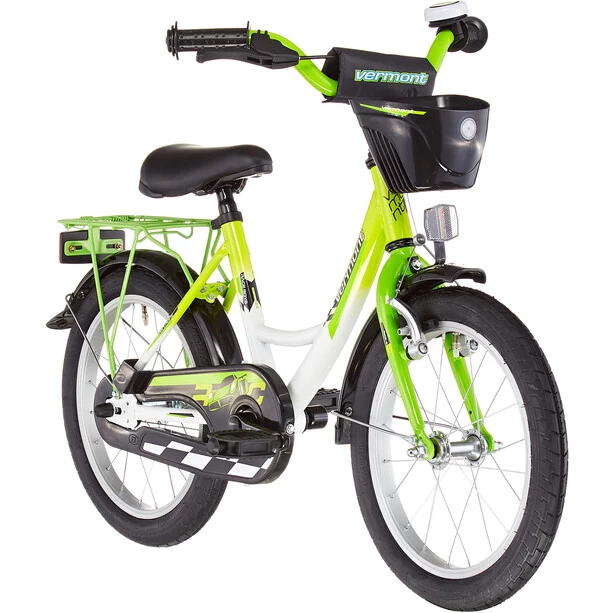 Das coole Kinderrad überzeugt Eltern vor allem durch Qualität und nützliche Details. Kinder zeigen sich begeistert von der wilden Optik des Bikes. Neben einem Rahmen mit tiefem Einstieg verfügt das Vermont-Kinderrad über stabile Aluminium-Felgen, Rücktrittbremse und Vorderradbremsen mit kindgerechten einstellbaren Bremshebeln sowie einem Vorbaupolster. Weiteres Highlight ist die coole Box am Lenker, damit die Eroberungen der Fahrradstreifzüge auch transportiert werden können.